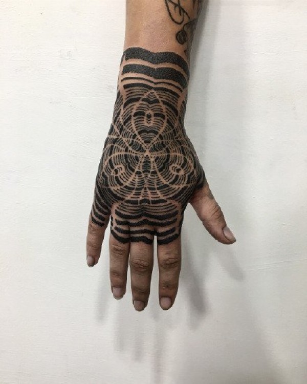 死黑手背纹身--从手臂到满手背的深黑色纹身图案