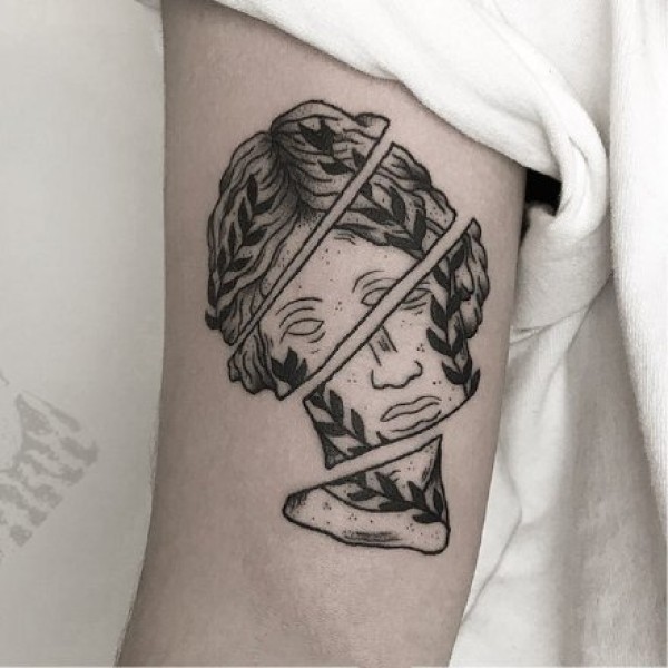 手臂上的一组16张黑灰色纹身图案作品欣赏