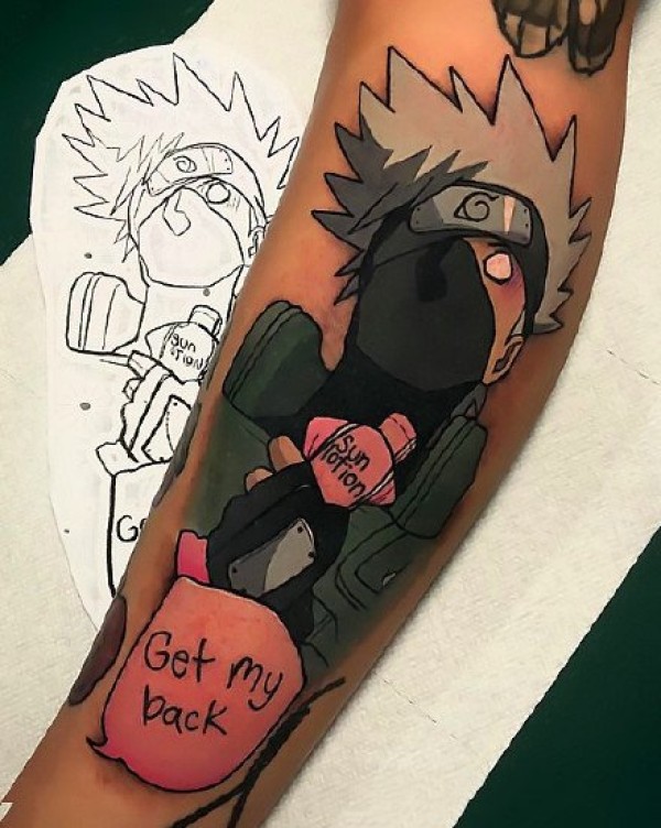 手臂上的火影忍者鸣人佐助卡卡西等角色动漫纹身图案