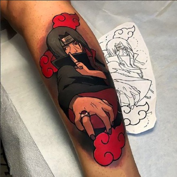 手臂上的火影忍者鸣人佐助卡卡西等角色动漫纹身图案