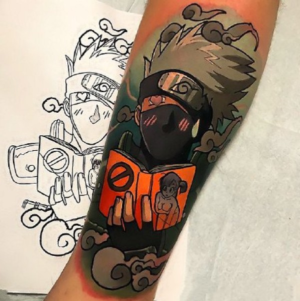 手臂上的火影忍者鸣人佐助卡卡西等角色动漫纹身图案