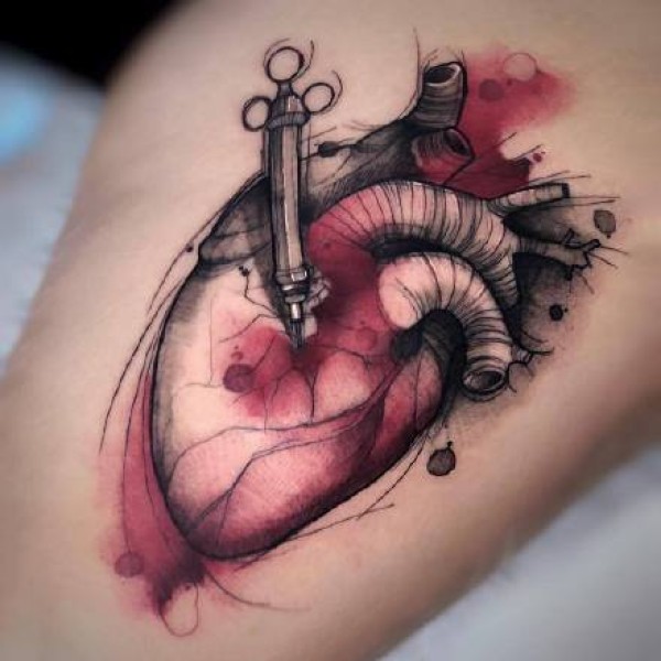 胳膊原创水彩心上钥匙纹身图案
