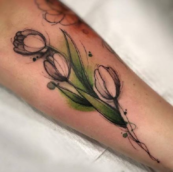 手臂上的一组泼墨水彩风格的纹身作品9张