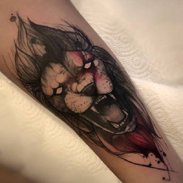 手臂上的一组泼墨水彩风格的纹身作品9张