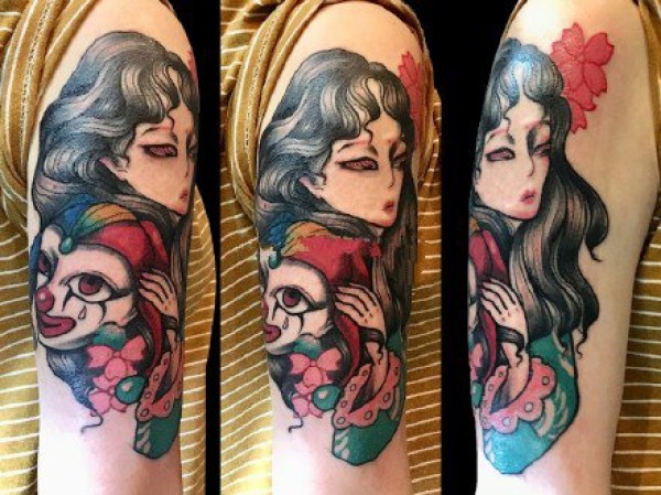 混合了oldschool和newschool风格的彩色纹身图案