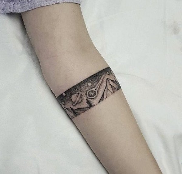 星球臂环:9张小手臂上的一组星球手环臂环纹身图案