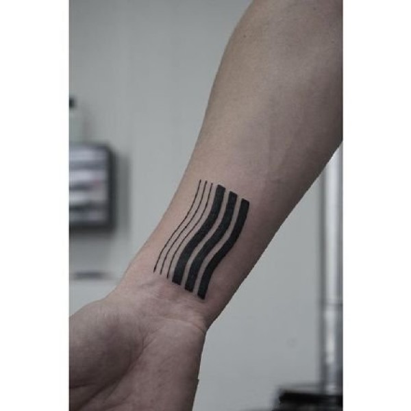 水波纹纹身:一组手部的简约黑色水波纹纹身作品图片