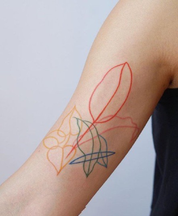 纹在手臂胳膊上的黑灰素花花卉纹身图案欣赏