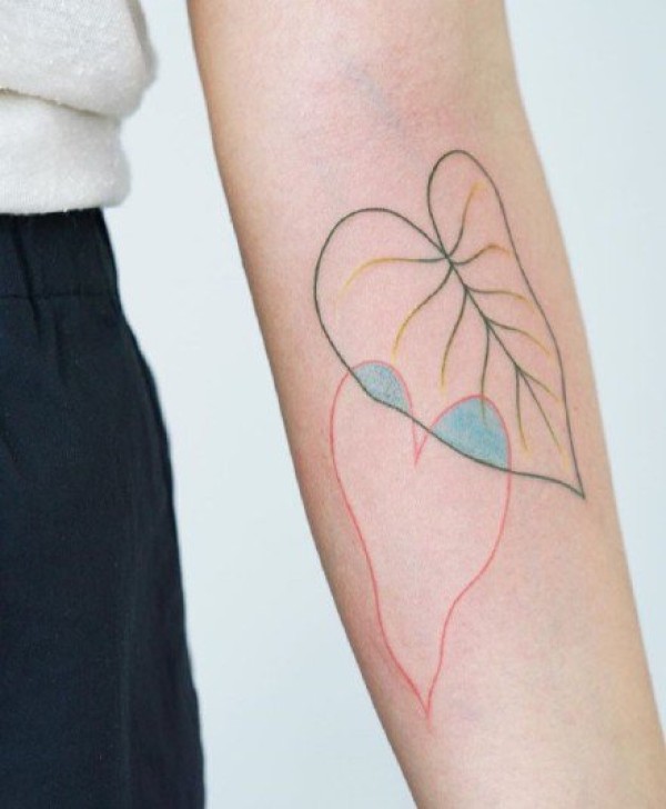 纹在手臂胳膊上的黑灰素花花卉纹身图案欣赏