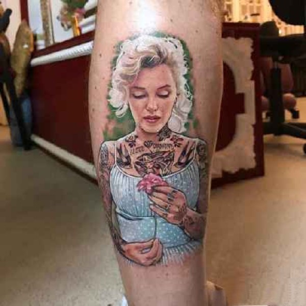 清纯女孩腿上可爱肖像纹身图片_肖像纹身图案大全_纹身图吧