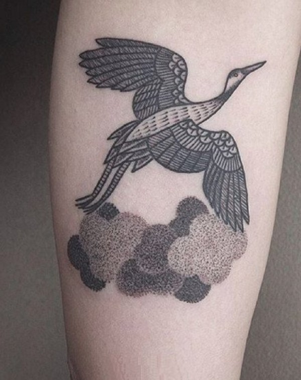 一组仙鹤相关的9张仙鹤纹身图案欣赏