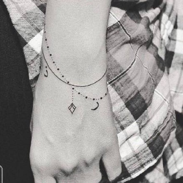 手腕处精致漂亮的手环手链纹身图案