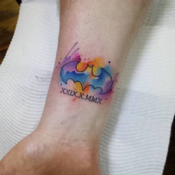 后颈部蓝色马蹄莲和黑色满天星纹身