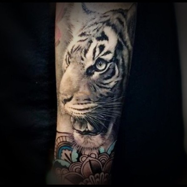 狮头虎头纹身 9组逼真的手臂包臂写实虎头和狮子头纹身图案