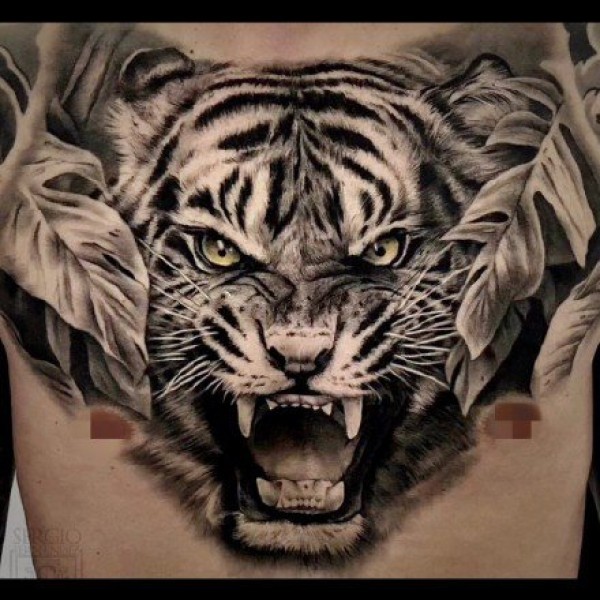 男性们都喜欢这样帅气的凶猛的老虎纹身图案