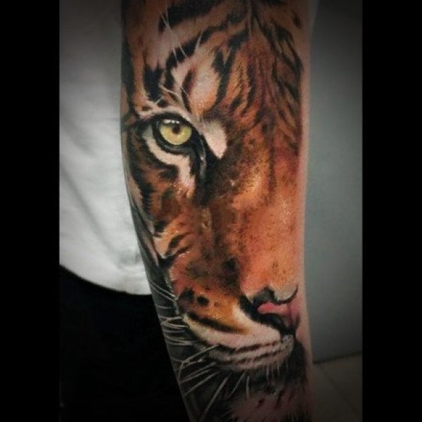 狮头虎头纹身 9组逼真的手臂包臂写实虎头和狮子头纹身图案