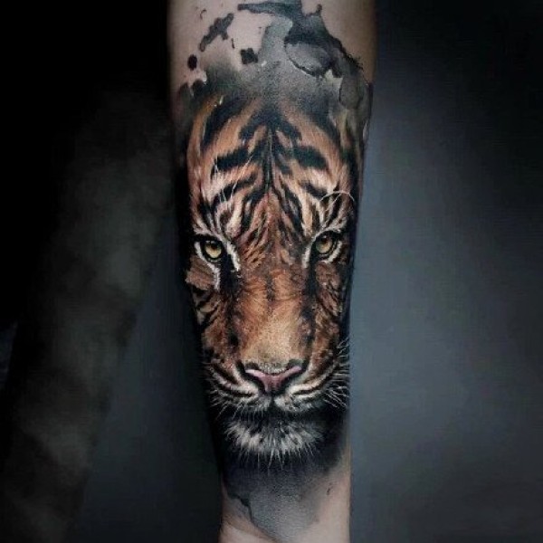 男性们都喜欢这样帅气的凶猛的老虎纹身图案