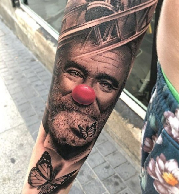 欧美风格的一组写实红鼻子小丑肖像纹身图案