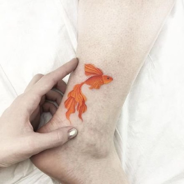 金鱼纹身 漂亮的9张唯美彩色小金鱼纹身图案