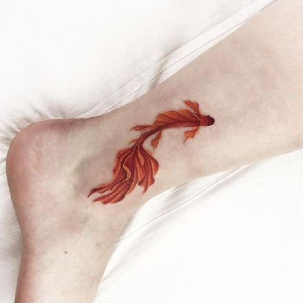 金鱼纹身 漂亮的9张唯美彩色小金鱼纹身图案