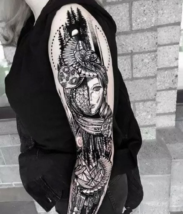 女性人物纹身图案 男生大臂纹身女性人物纹身图案