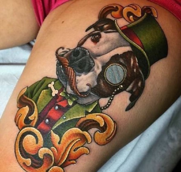 潮流纹身-色彩可爱的小猫小狗手臂纹身图片