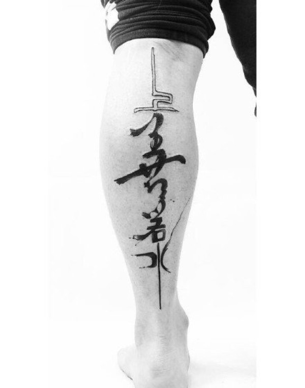 水墨书法风格的纹身-每个字背后都蕴含着深刻的含义