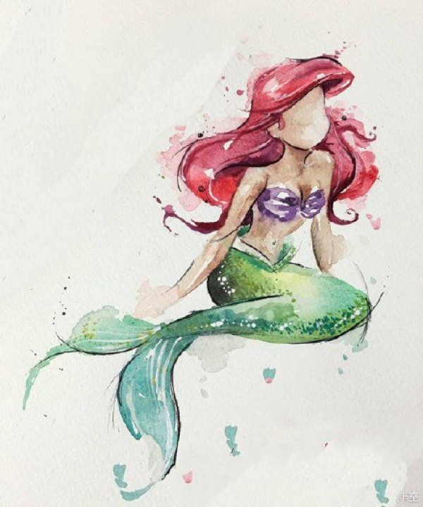 美人鱼纹身图案-彩绘水彩素描创意文艺唯美美人鱼纹身图案