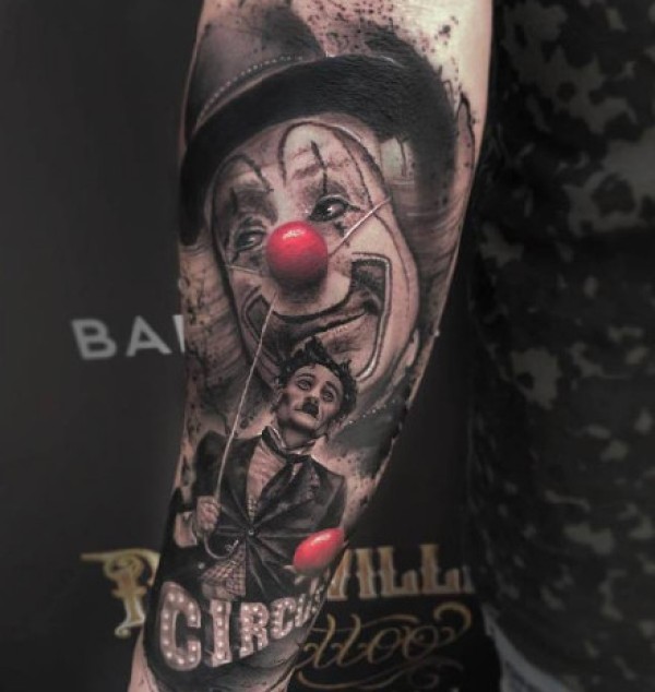 欧美风格的一组写实红鼻子小丑肖像纹身图案
