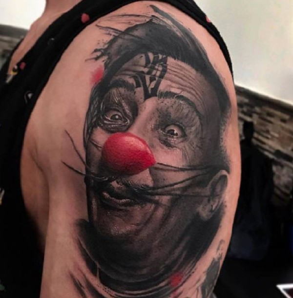 欧美风格的一组写实红鼻子小丑肖像纹身图案