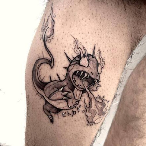 神奇宝贝纹身 男生小腿上童趣的神奇宝贝纹身图片