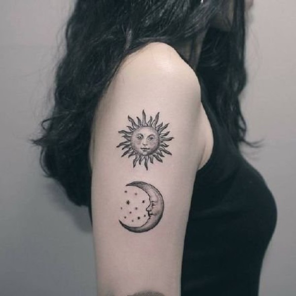 日月纹身--很适合情侣的太阳月亮的成对日月纹身图案