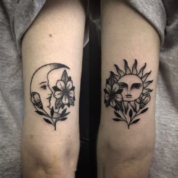 日月纹身--很适合情侣的太阳月亮的成对日月纹身图案