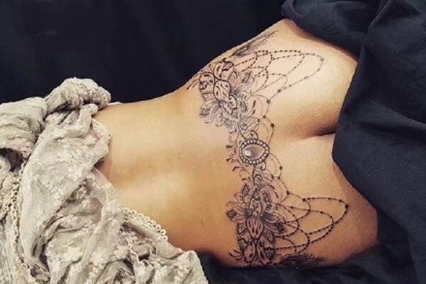 女生身上很性感的宝石蕾丝链纹身图案欣赏