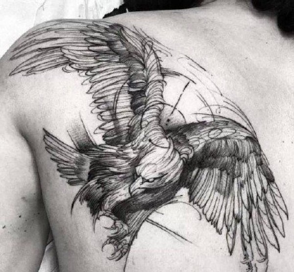 雄鹰刺青--9张黑灰线条的老鹰纹身作品图片欣赏