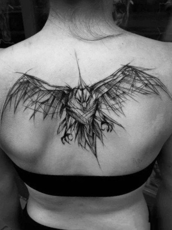 雄鹰刺青--9张黑灰线条的老鹰纹身作品图片欣赏