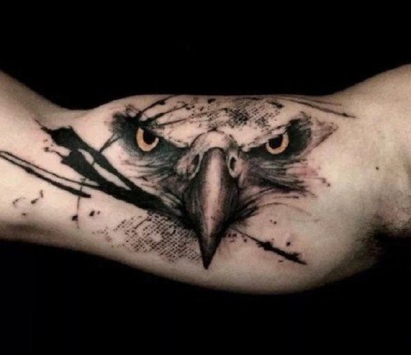 雄鹰刺青--9张黑灰线条的老鹰纹身作品图片欣赏
