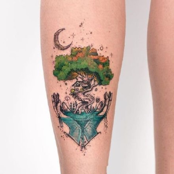 手臂和腿部很漂亮的一组彩色插画风格的纹身图案