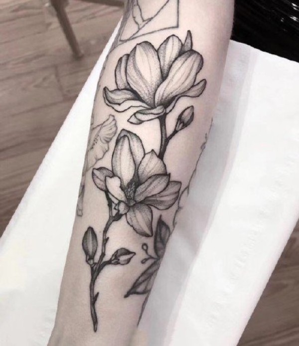 逼真的超现实主义花纹身图案来自纹身师莫拉莱斯