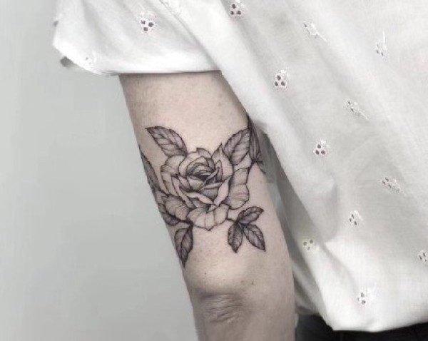 欧美玫瑰纹身 男生手臂上花朵纹身图片