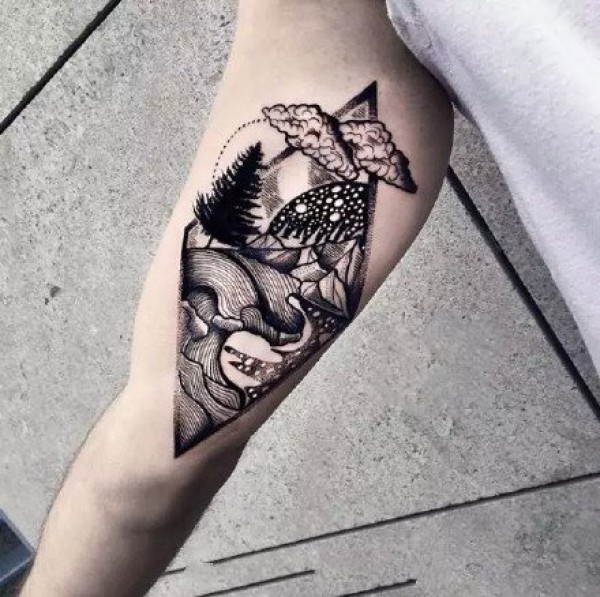 黑灰包小臂的几张点刺纹身图案