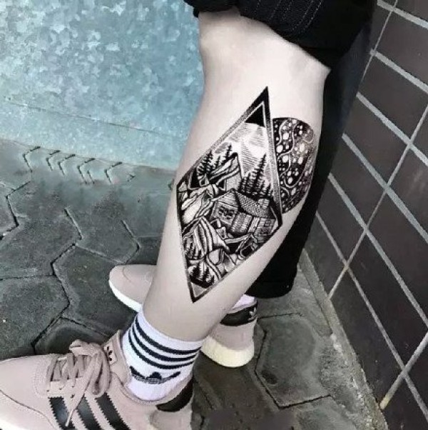 手臂上很好看的一组黑白色点刺线条纹身图案作品