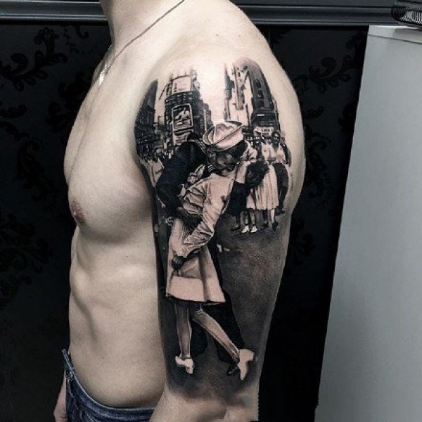 手臂上的精品欧美大黑灰纹身作品图案9张