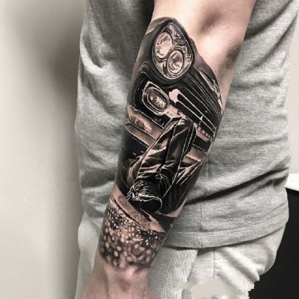 手臂上的精品欧美大黑灰纹身作品图案9张