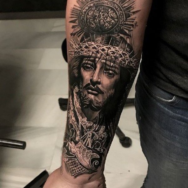 手臂上的精品欧美大黑灰纹身作品图案9张