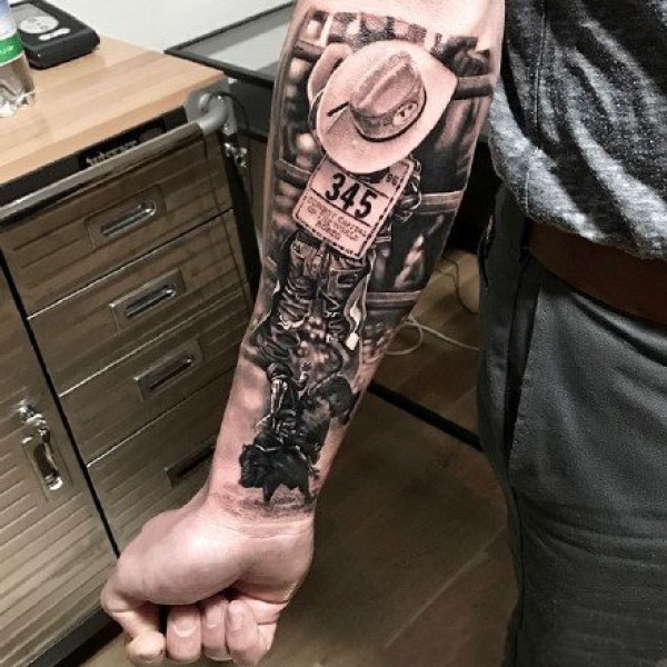 手臂上的精品欧美大黑灰纹身作品图案9张