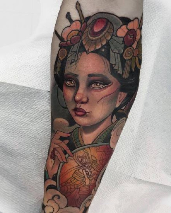 一组彩色的school欧美女郎纹身作品图案