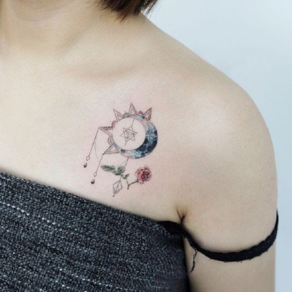 15款女神纹身小清新纹身月亮简单个性线条纹身图案