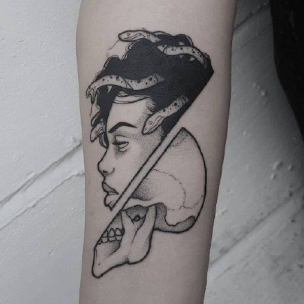 黑灰色半人脸半骷髅的一组个性半脸纹身图案9张
