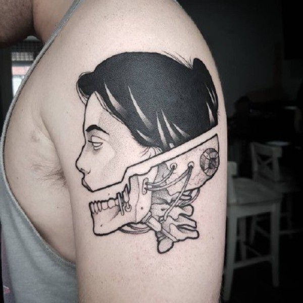 黑灰色半人脸半骷髅的一组个性半脸纹身图案9张